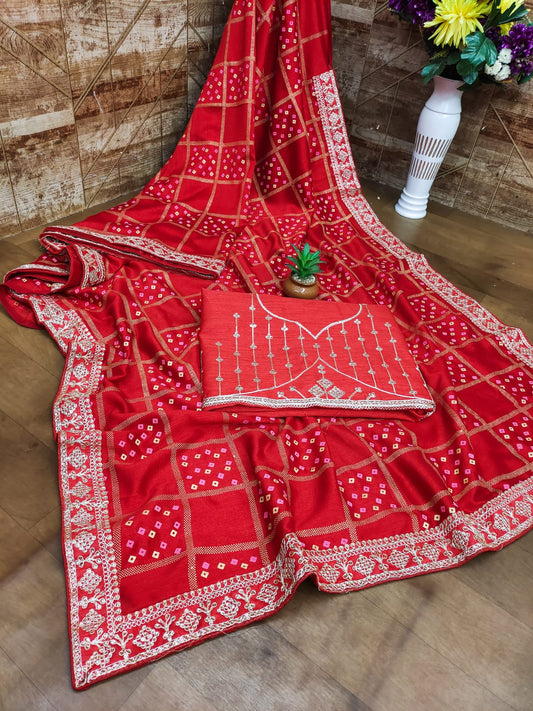 Ruhabs Bandhani Printed Embroidered Silk Saree