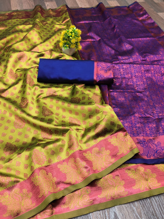 Ruhabs Banarasi silk Copper zari woven south indian saree with Blouse Piece