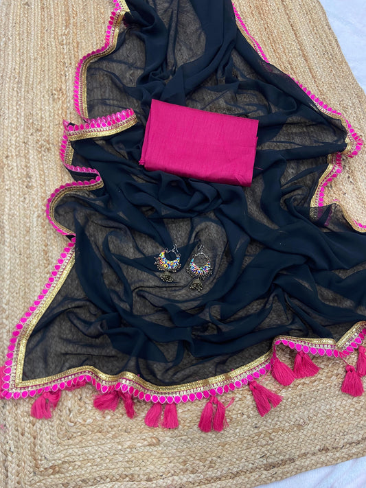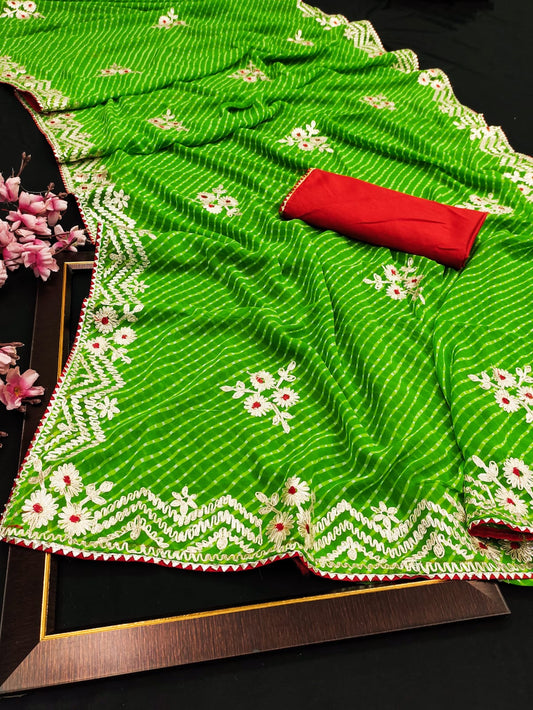 Ruhabs Bamberg Georgette Leheriya Gota Patti Sarees