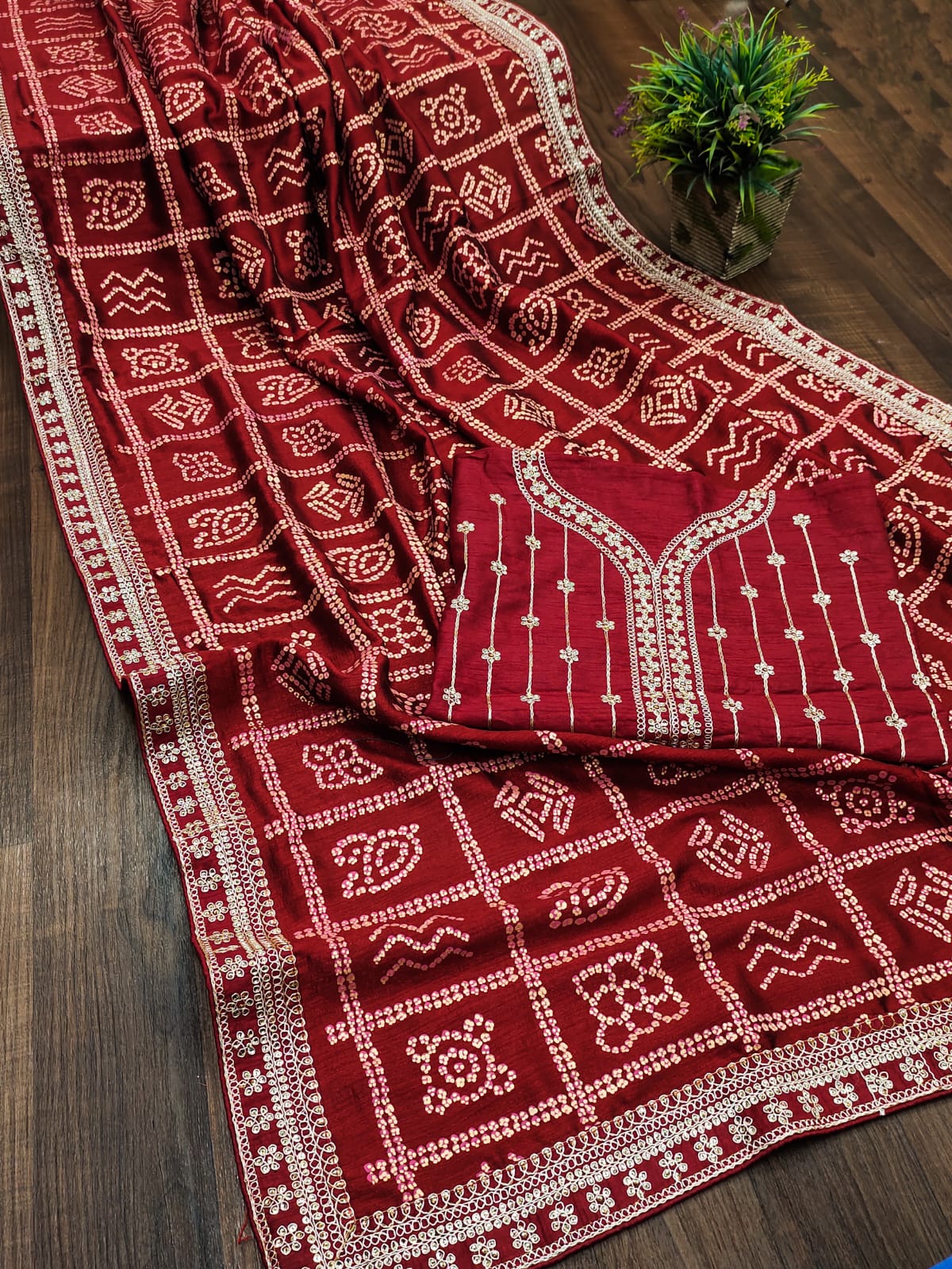 Ruhabs Bandhani Printed Embroidered Silk Saree