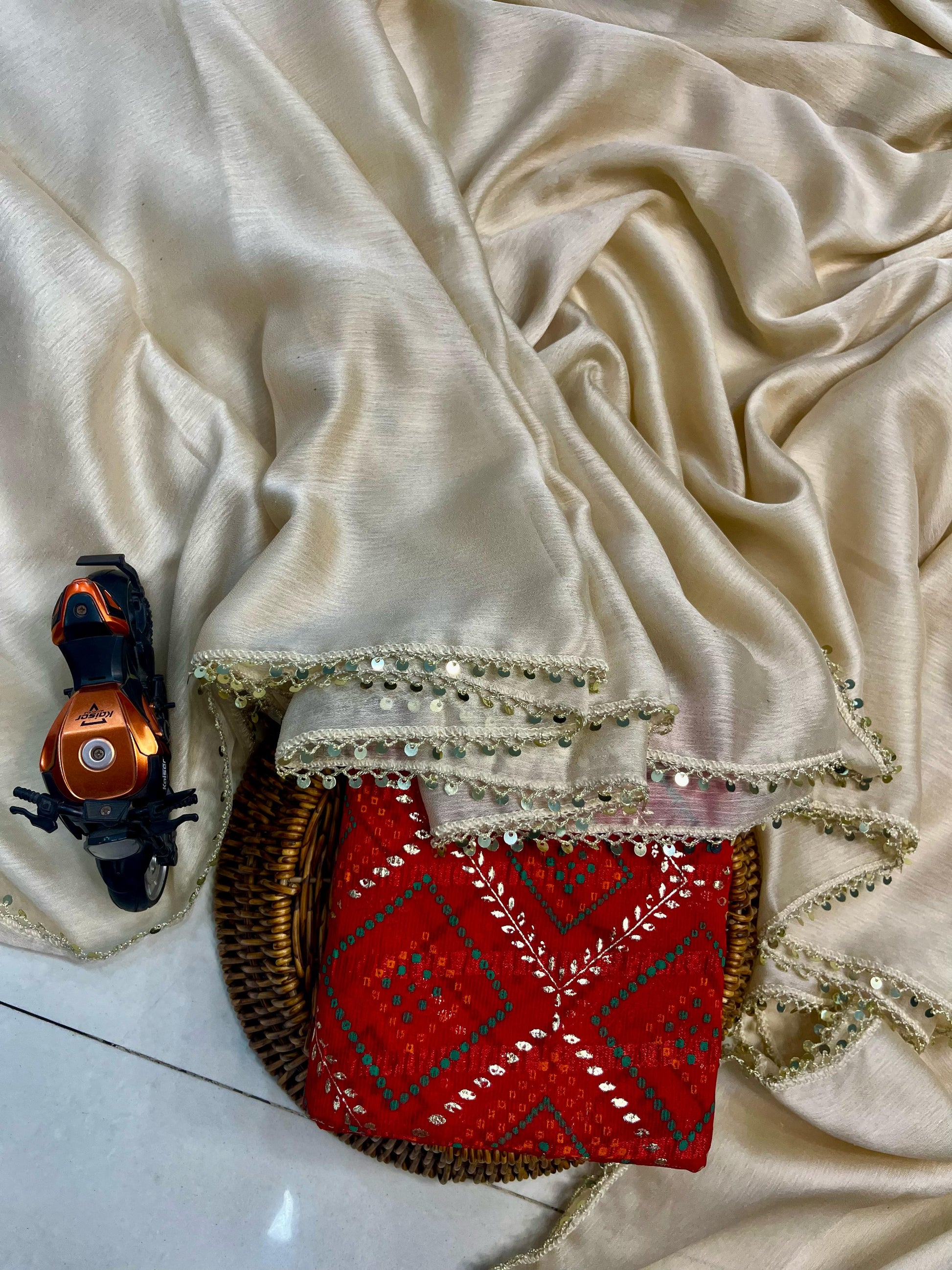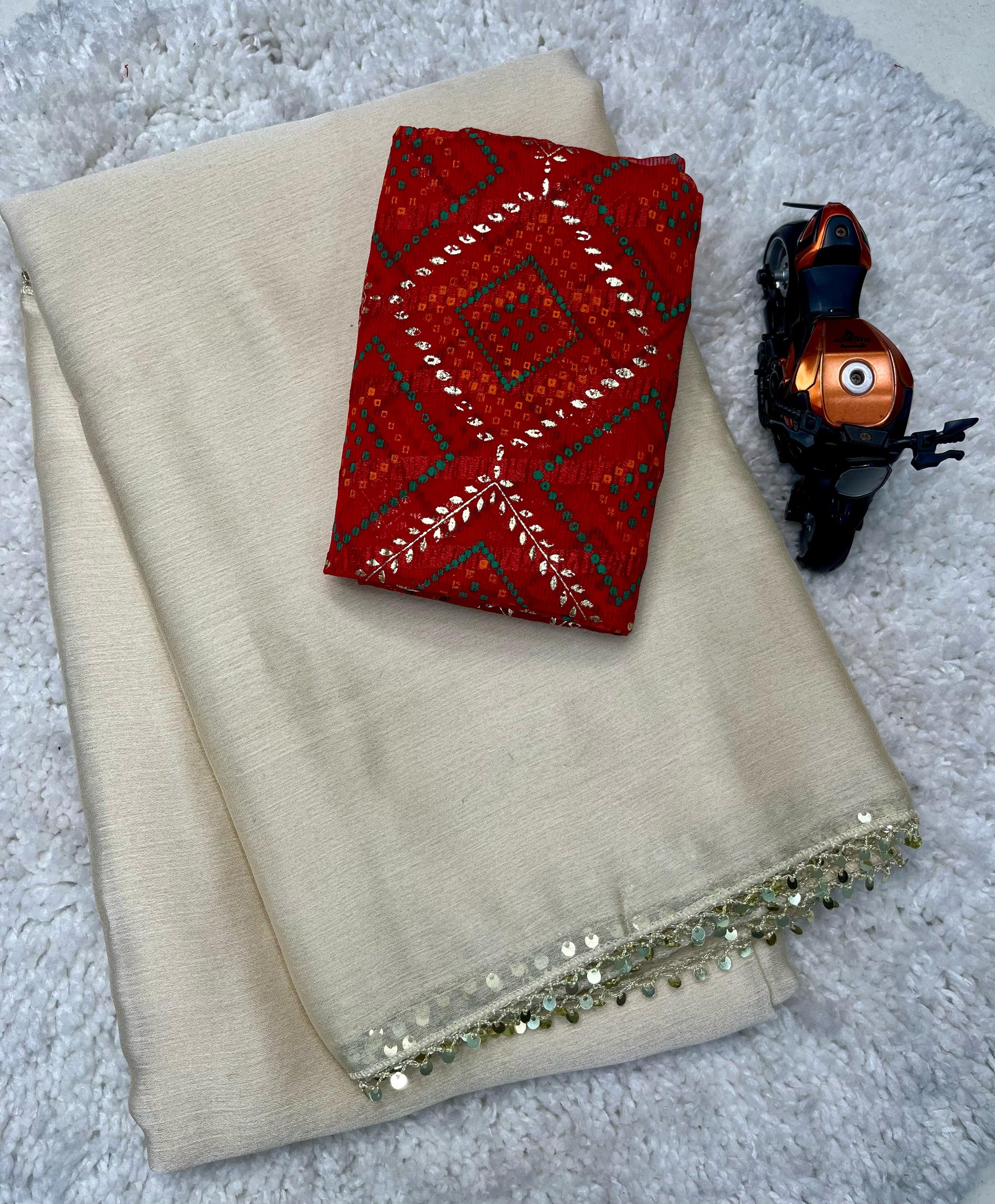 Ruhabs Beautiful Soft Chiffon Celebrity Inspired Saree with Designer Lace Border.
